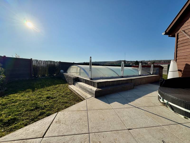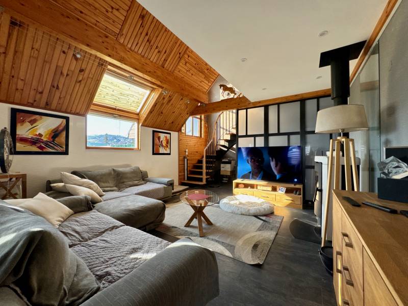Au rez-de-chaussée, une cuisine ouverte, entièrement refaite en 2022, apporte modernité et convivialité. Le salon-séjour, lumineux et chaleureux, donne directement sur une terrasse exposée plein sud. Le jardin, sans vis-à-vis, comprend une piscine, idéale pour les beaux jours.