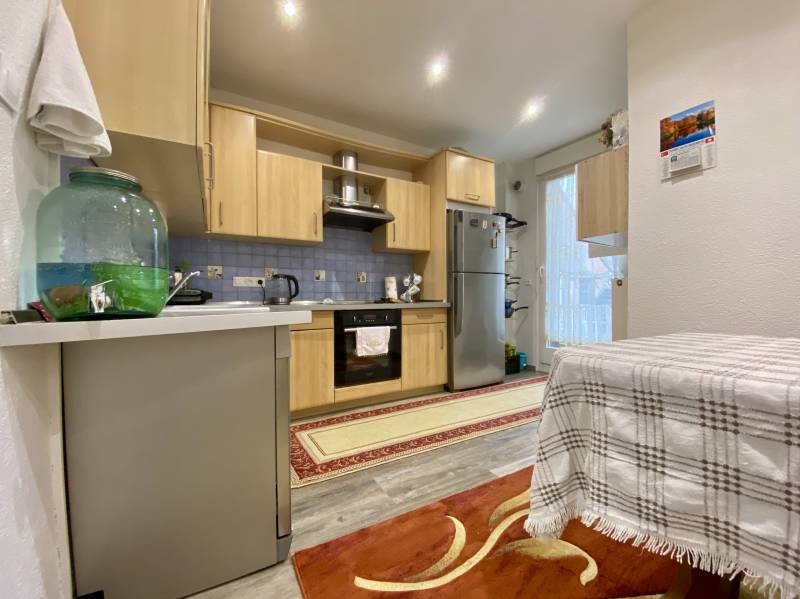 - L'appartement du premier étage dispose d'un salon-séjour, une cuisine indépendante équipée, 2 chambres ainsi qu'une salle de bain avec Wc.