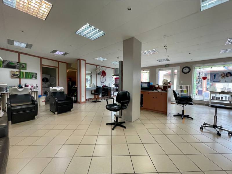 L'établissement se trouve à proximité immédiate des écoles et des commerces, occupant une position centrale sur l'axe principal de la ville de Rohrbach-lès-Bitche. Le local commercial est conçu de manière fonctionnelle, comprenant une pièce principale dédiée à l'activité, agrémentée d'une spacieuse vitrine qui constitue un excellent moyen de promouvoir le salon. De plus, vous bénéficiez d'une réserve équipée d'un coin repas, d'un espace de rangement pratique, de sanitaires et d'une cave, idéale pour stocker vos produits en toute sécurité.