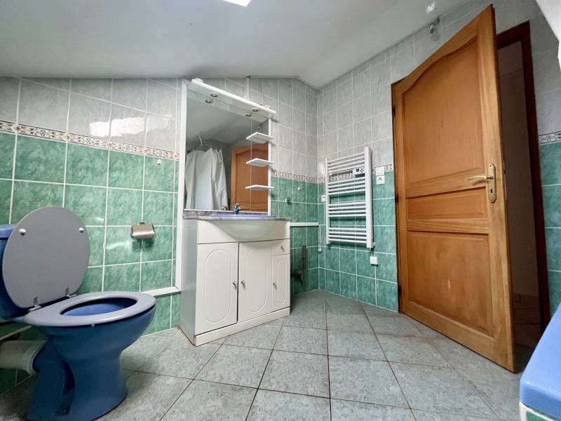 Au rez-de-chaussée, découvrez un local professionnel de 60m² actuellement exploité comme le célèbre "Café de la Paix", équipé de deux toilettes, un pour hommes et un pour femmes, assurant ainsi la satisfaction des besoins des visiteurs.