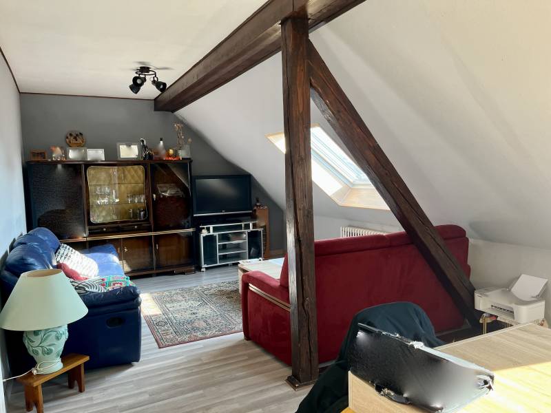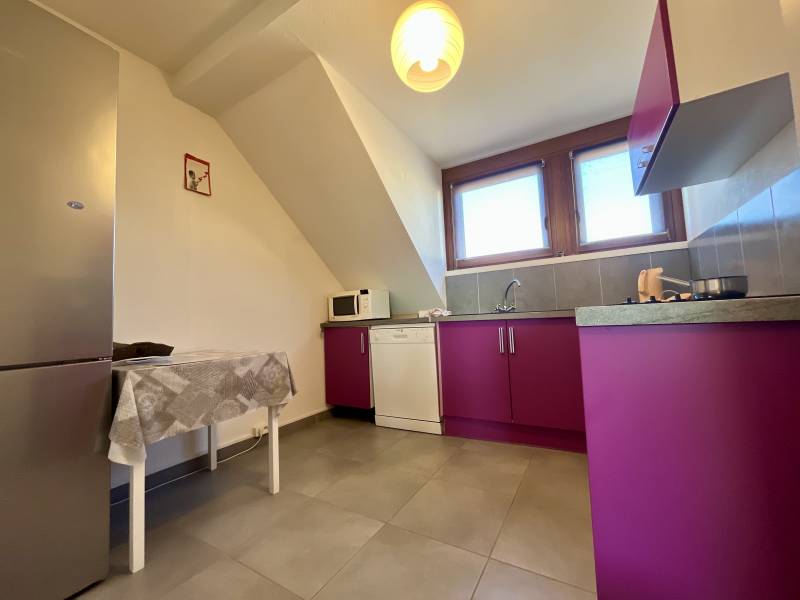 À l'étage, on y trouve un logement de type F3 d'environ 80m2 (libre au 1er mai) se composant d'une entrée un salon/salle à manger, 2 chambres, une cuisine équipée, un WC, une salle d'eau.