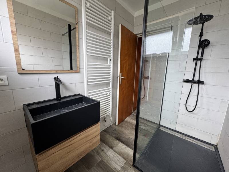 La maison se compose au rez-de-chaussée d’une chambre, parfaite pour une vie de plain-pied, d’une petite cuisine à rafraîchir, et d’un beau salon – salle à manger ouvert, agréable et lumineux, offrant un véritable espace de vie convivial. À l’étage, vous trouverez deux chambres supplémentaires, confortables et bien agencées.