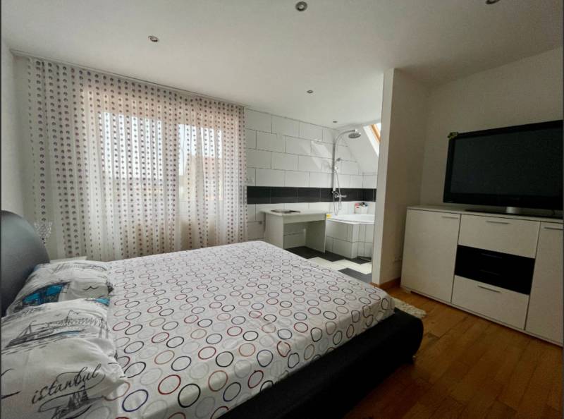À l'étage se trouvent 2 chambres et une salle de bain et un espace dressing.